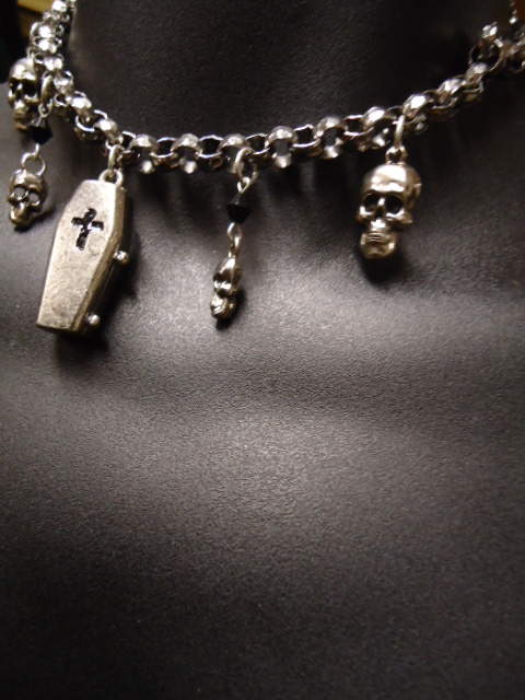 #3565Â Coffin (1 1/4″ L) and Skulls (1/2″ & 3/4″) Heavy Chain Necklace