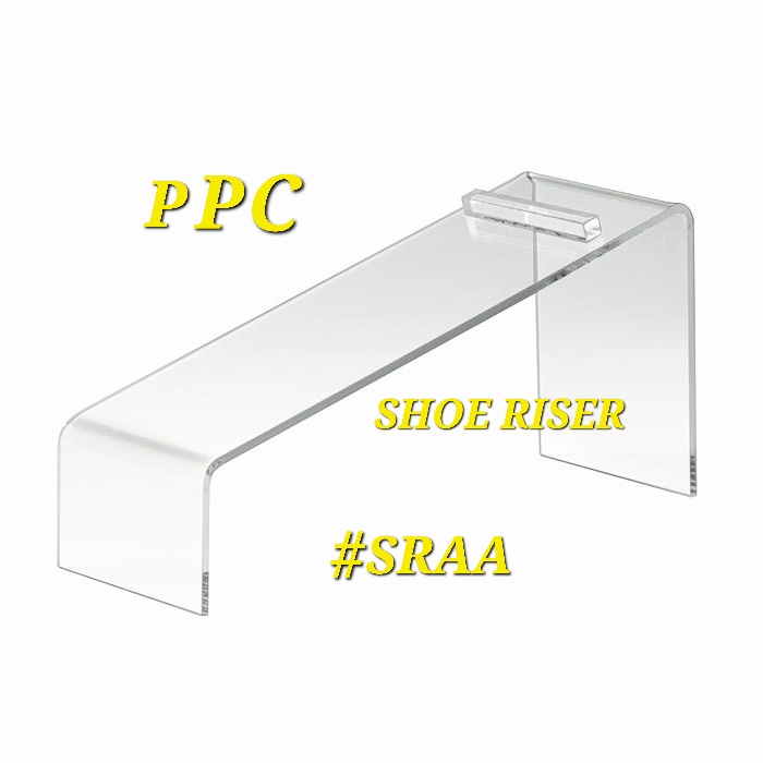 POLLY PRODUCTS COMPANY SHOE RISER: #SRAA. THE EASIEST AND BEST WAY TO PRESENT FOOTWEAR FOR VISUAL MERCHANDISING DISPLAYS AY TRADE SHOWS, STORE DISPLAYS, FOR SALES REPS, SHOWROOM USE, AND WEBSITE/REELS PROPS AND FIXTURES.
